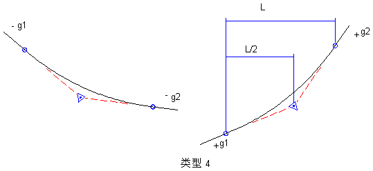 凹曲线放置在山谷中,或任何坡率变大处。凹曲线有三类:从负坡率向正坡率过渡、从负坡率向负坡率过渡以及从正坡率向正坡率过渡: