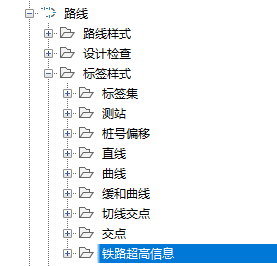 路线标签样式集合中提供了铁路超高信息标签样式: