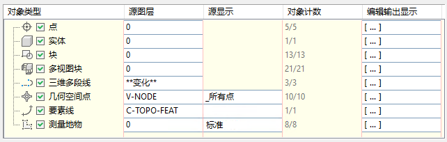 仅当线性对象(如要素线、测量地物、三维多段线)与指定的横断面图的采样线相交时,才会投影这些线性对象。投影规则不适用于这些对象。