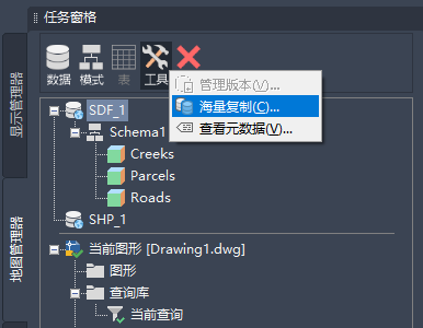 - 可以使用海量复制将数据从其他地理空间格式复制为 SDF 格式,和从 SDF 复制为其他地理空间格式。