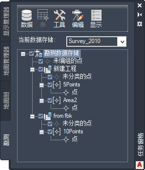 使用“勘测”选项卡可输入和组织勘测数据点。