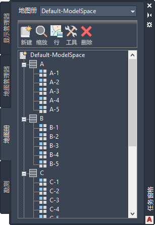 使用地图册可以从已设置样式的地图中创建打印地图、地图册和多页 DWF。地图册使用 AutoCAD 图纸集管理器,在地图册中提供分幅树视图,如同地图集中的页面。使用导航箭头可以在地图中的分幅之间移动。
