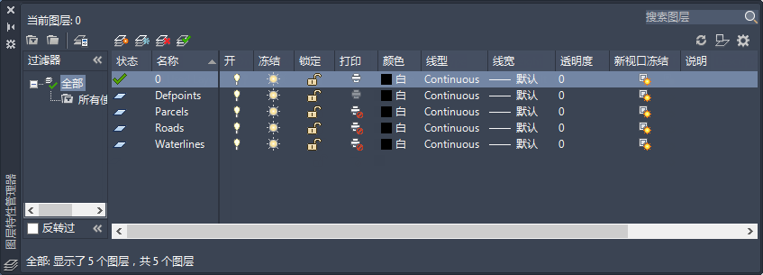 图形中的图层及其特性都将被列出。