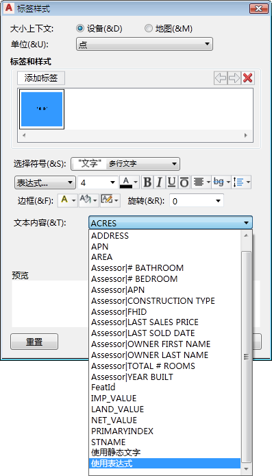 您可以使用由表达式确定的文字标记每个地块。在此练习中,您将为每个在两条直线上显示地块地址的地块创建标签。