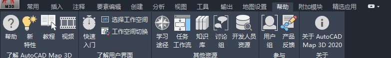 - 帮助:浏览或搜索涵盖 AutoCAD Map 3D 工具集 的所有方面的概念和操作步骤。