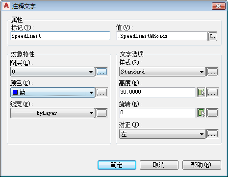 使注释文字采用蓝色并使高度为 30 个单位。