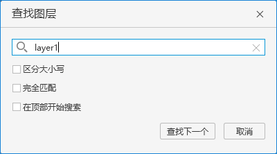 - 在“查找图层”对话框中,指定要在图层名称中搜索的关键字,然后从以下选项中进行选择: