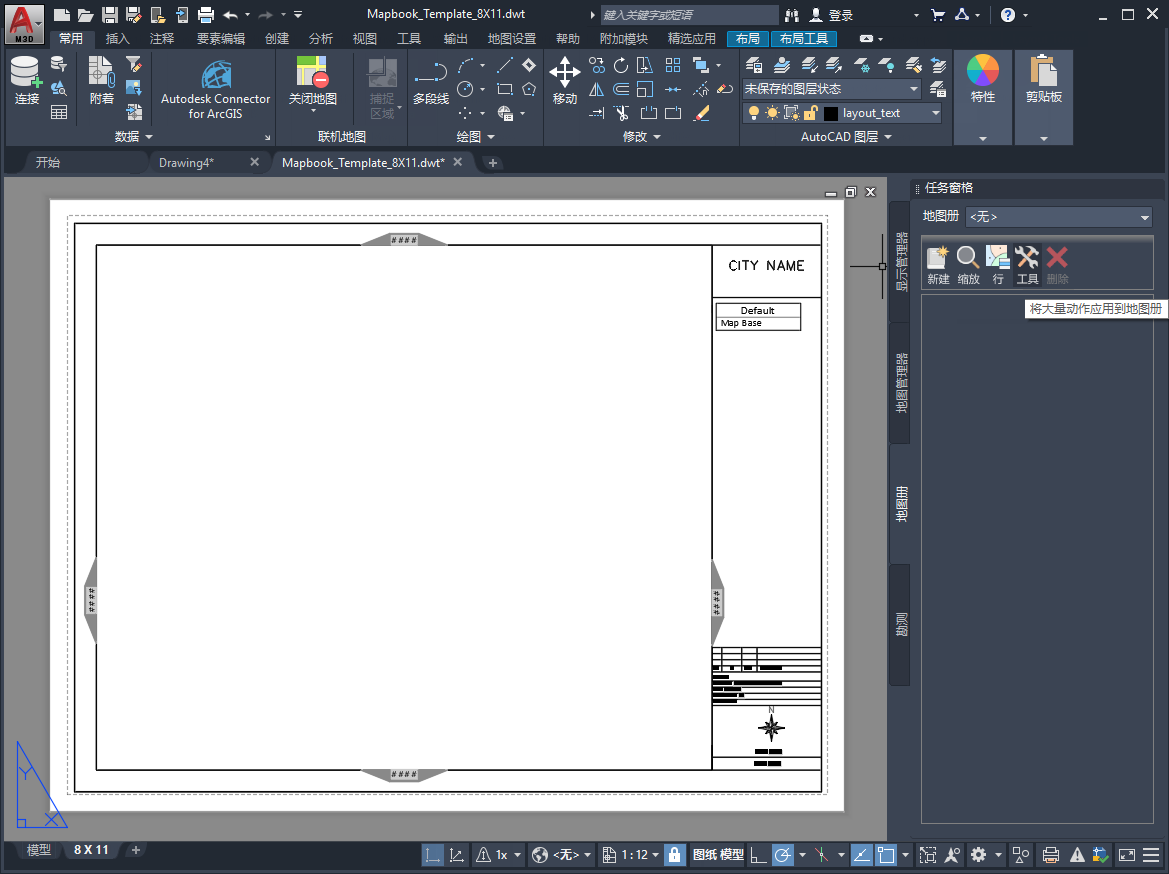 一个样板可以包含一个或多个布局。如果样板包含多个布局,则用户必须指定一个以用于特定的地图册。