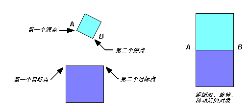 两个源点与两个目标点间的角度差指定了旋转角度。