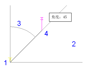 创建对象(例如,直线或圆弧)时,可以通过指定到另一个点之间的方向角和距离来指定点。