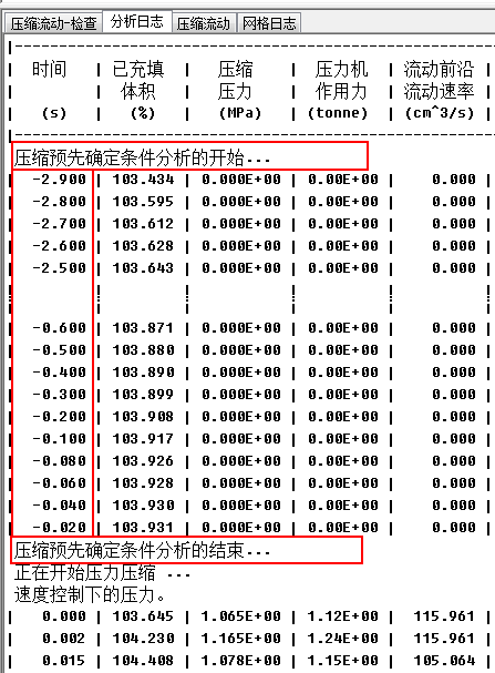 在日志文件中,分析的预先确定条件阶段会按从 -(延迟时间)到 0 的负数进行显示。