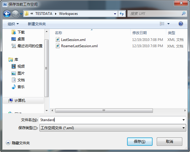 在“保存当前工作空间”对话框中,输入新工作空间的名称。此外,您还可以选择现有工作空间的名称,以便用修改后的配置覆盖它。