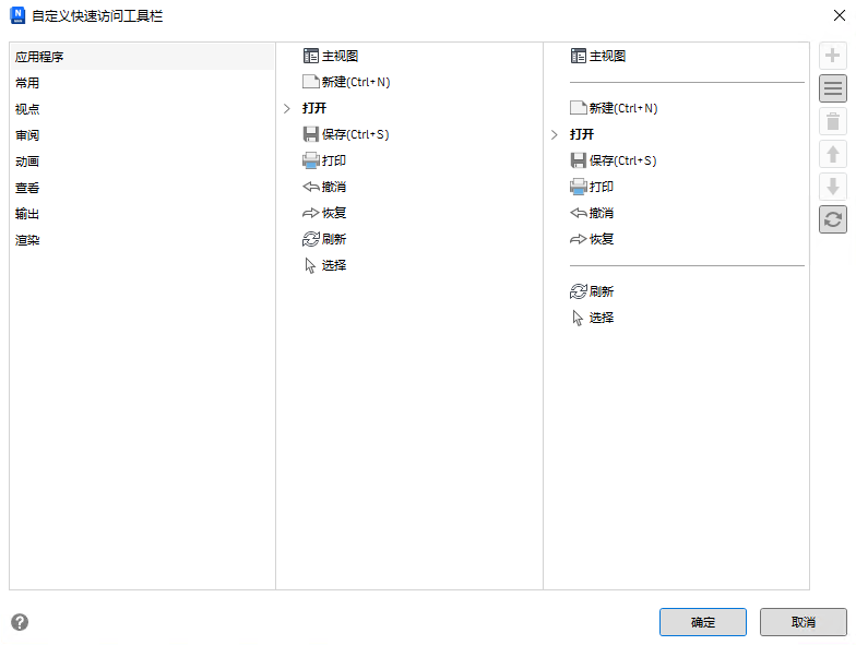 快速访问工具栏位于 Navisworks 窗口的顶部,其中显示常用命令。