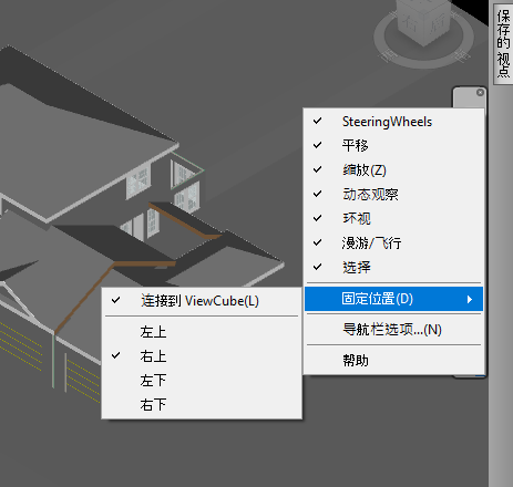 使用导航栏可以访问与在模型中进行交互式导航和定位相关的工具(包括 Autodesk® ViewCube® 和 SteeringWheels®)。