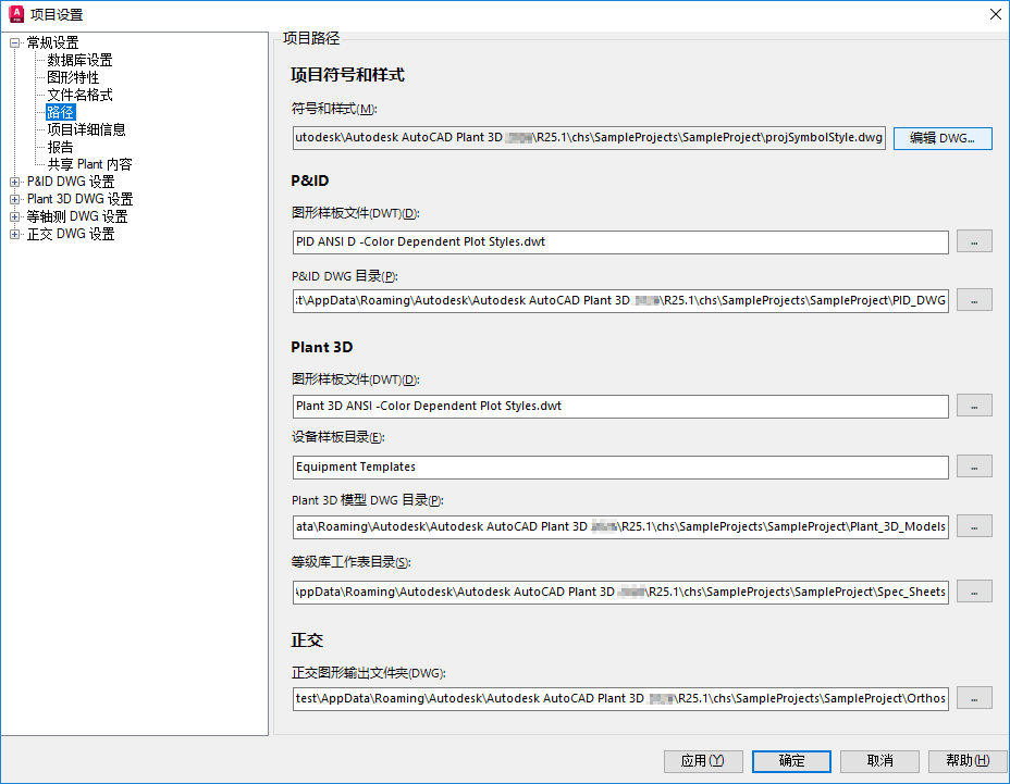 配置常规路径和文件位置的步骤(P&ID 和 Plant 3D)
