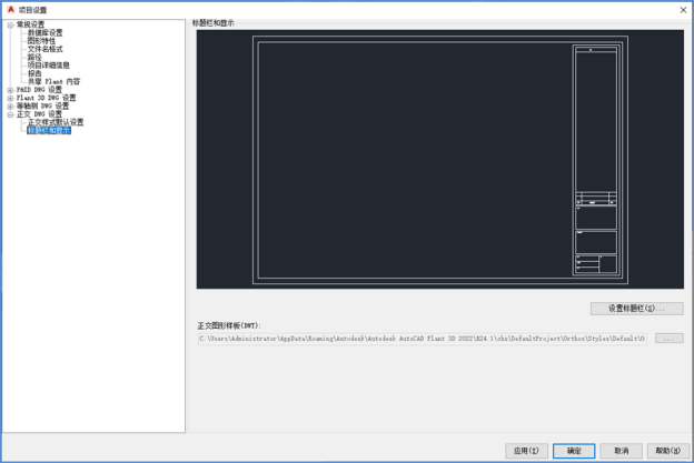 显示“标题栏设置”功能区上下文选项卡。单击“正交设置”将显示“正交生成设置”对话框,您可以从中指定正交元件的图层。