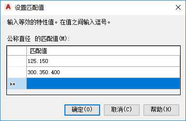 如果要匹配英制和公制值,请将第一个值指定为英制并将第二个值指定为公制。例如:大小为 4,100 或压力类别为 150,10PN。