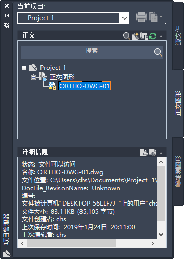 在项目管理器中,单击“正交图形”选项卡。