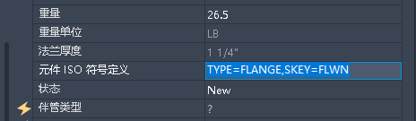 元件 ISO 符号定义必须包括 TYPE=VALVE-MULTIWAY,才能在特性选项板中设置级别角度。大多数基于等级库的元件不允许更改标注,而基于类型启用元件是特殊情况。