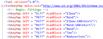 Isometric 项目文件夹还包含用于将SKEY映射到符号的 IsoSkeyAcadBlockMap.xml。