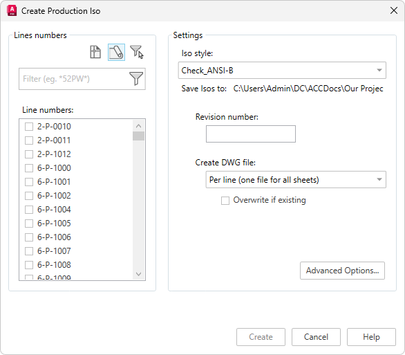 指定是在单个 ISO 图形文件中生成相同线号的所有 ISO 图纸,还是按每张图纸创建单独的 ISO 图形。