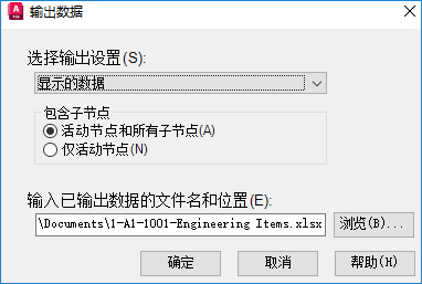 在“输出数据”对话框的“选择输出设置”列表中,单击“显示的数据”或自定义设置。