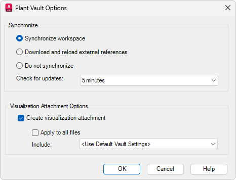 有关 Autodesk Vault 联机帮助,请参阅“配置可视化附着”选项