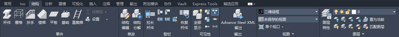 “结构”选项卡显示用于处理结构的选项。此选项卡包括以下面板: