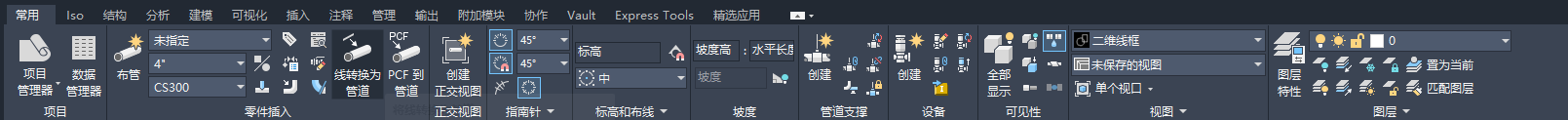 三维管道“常用”选项卡是“三维管道”工作空间的一部分。