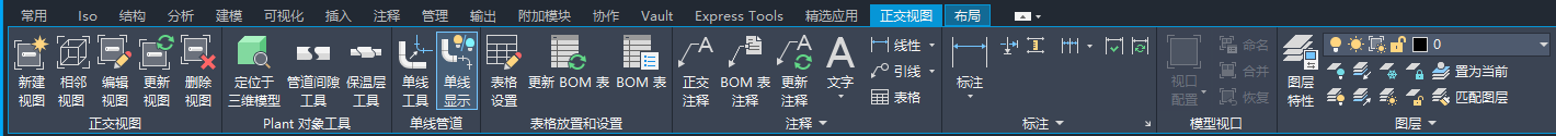 “正交视图”上下文选项卡是“三维管道”工作空间的一部分。