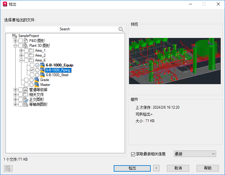 选择要检出的单个文件或文件夹。单击树中的复选图标