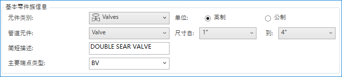 - 在“基本零件族信息”下,指定尺寸范围(例如,1" 到 4")。