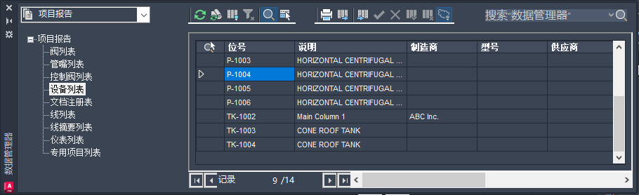 • 在数据管理器的下拉列表中,单击“项目报告”。