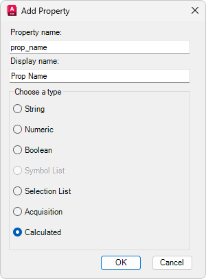 • 在“显示名称”下,输入在使用数据管理器或“特性”选项板时希望显示的新特性名称。