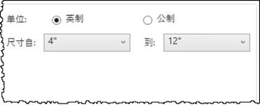 在“基本零件族信息”下,指定初始尺寸范围(例如,4" 到 12")。