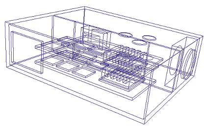 After running the simulation, hide the outer casing and air volume to view results on internal components:
