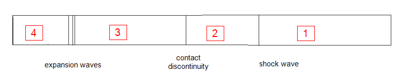 Compressible flow in a shock tube is a classic gas dynamics problem. For ideal flow (no friction), the normal shock relations can be used to determined the shock speed and the conditions downstream of the shock.