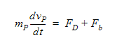 where mp is the particle mass, vp is the particle velocity, Fb is the buoyant force and Fd is the drag force calculated using: