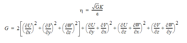 The RNG turbulence model is also an eddy viscosity turbulence model. The turbulent kinetic energy and turbulent dissipation rate are calculated as before. The difference between the two turbulence models lies in the determination of the constants in Table 2. The values for the RNG model are listed in Table 3 with C1 calculated using the expression: