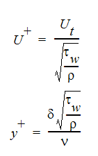 are dimensionless constants. The inner variables U+ and y+ are defined as: