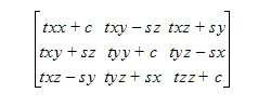 The global coordinates of any point (x,y,z) on the moving part can be computed using the following transform.
