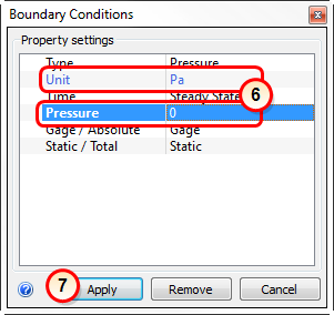 6. Set the Unit to Pa and the Pressure value to 0.