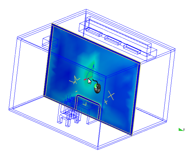 As you drag the plane around the model, you can see how the air flows around the furniture and occupant.