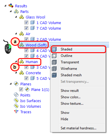 Right click on Wood (Soft) in the Results > Parts branch of the Design Study bar, and click Shaded.
