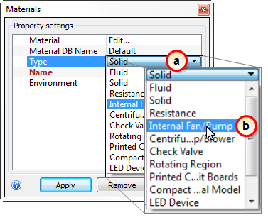 In this step, we assign a fan material to blow cooling air through the system.
