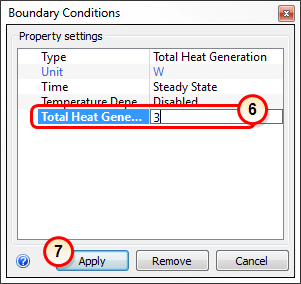 6. On the Total Heat Generation row, enter 3.