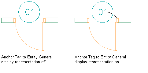 Use this procedure to view the current link between a schedule tag and an object. If you have many tags and are not sure how they are attached, it is useful to see this link displayed. This procedure turns on the General display representation for Anchor Tag To Entity and Anchor Extended Tag to Entity in the current view.