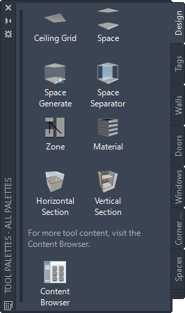 Use this procedure to configure the default Material tool and use it to apply an existing material definition to a component of an AEC object in a drawing. By default, the tool applies the Standard material definition, but you can modify the tool properties to specify any of the materials defined in the Material Definitions (Imperial).dwg or Material Definitions (Metric).dwg files.