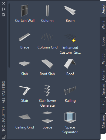 Custom palettes created by your CAD manager or other users may also contain railing tools with railing styles and properties that are customized for your projects or office standards.
