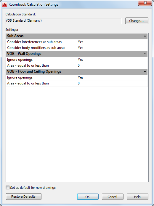 - Of course, you can define exceptions to the rule, that means to calculate individual openings regardless of their size. Those individual changes can be done in calculated Room Quantity Sub Areas dialog box, by clicking VOB Calc. If you don't want to perform a VOB-conform quantity calculation, but instead want to calculate the real quantities, you can simply set the two options to "Ignore Openings: No". In this way, all openings regardless of their size are calculated.